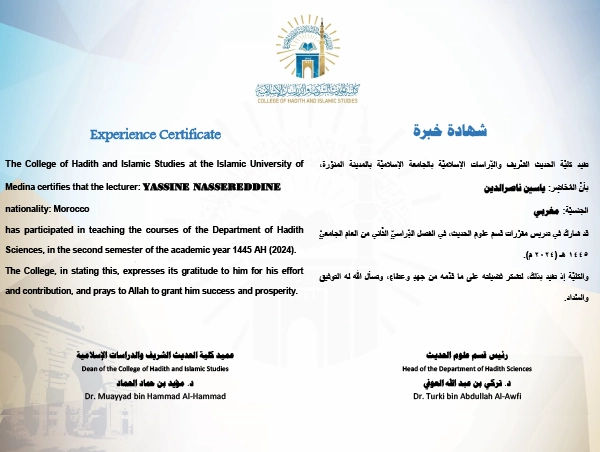 Yassine Nassereddine PhD Scholar and Professor of Hadith Sciences, combining deep academic research with practical experience as a Religious Guide for Umrah Rites.